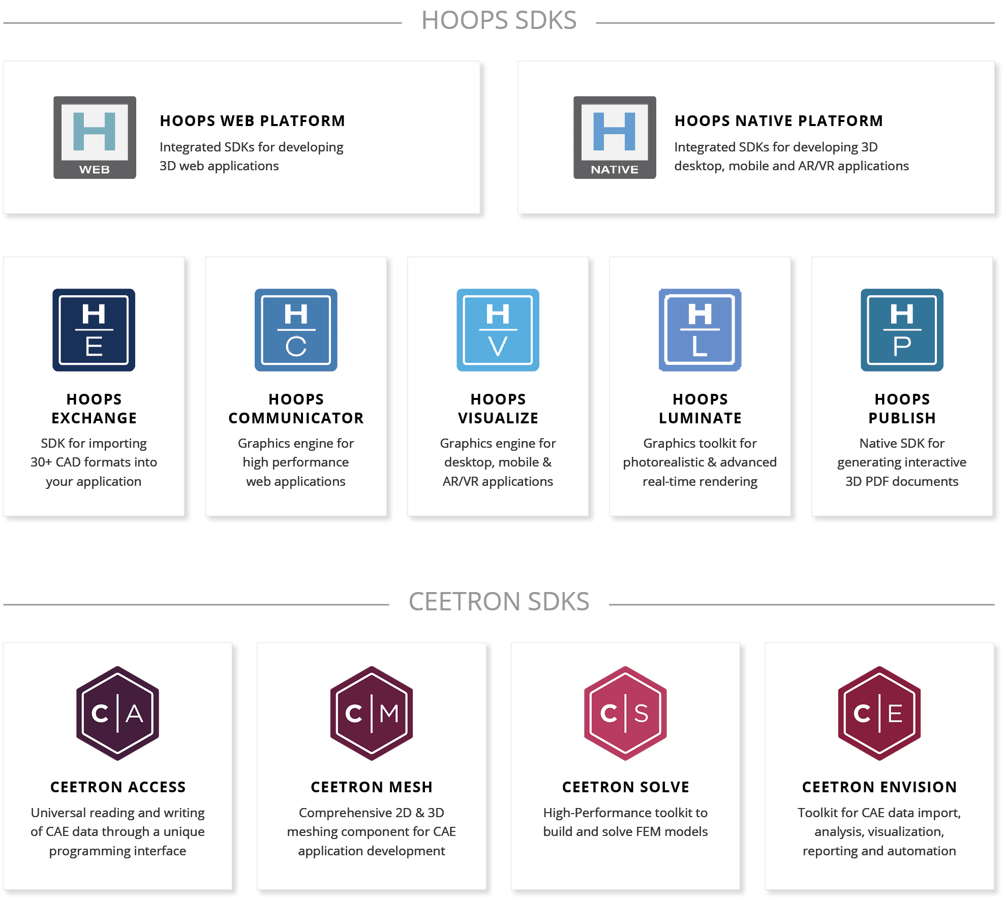 At Tech Soft 3D, we offer two platforms that allow our partners to license 3 SDKs at a reduced cost. HOOPS Native Platform and HOOPS Web Platform are comprehensive toolkits designed to support advanced software development for desktop/mobile and web-native applications, respectively. Users can also take advantage of the full HOOPS Platform, licensing 4 HOOPS toolkits.