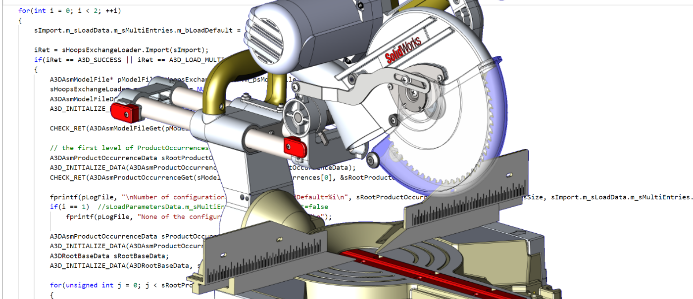 Reading CAD files into a HOOPS Exchange-enabled application is a very simple process. Simply set the options to control what data is read, and then call a single API to load the CAD file, which provides access to the original CAD data in the PRC data format. Learn more about reading files into HOOPS Exchange in our technical documentation, including using HOOPS Exchange with Parasolid and other modelers.